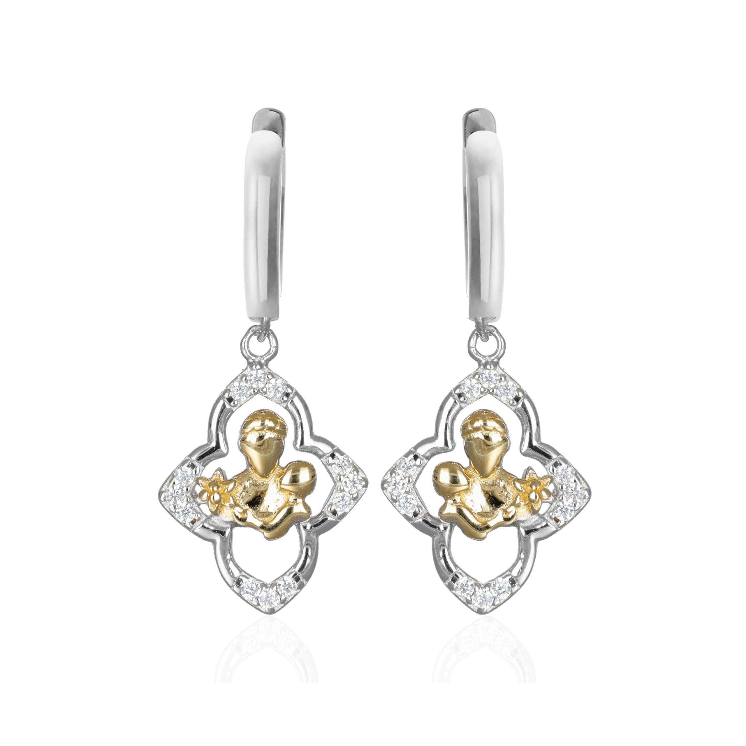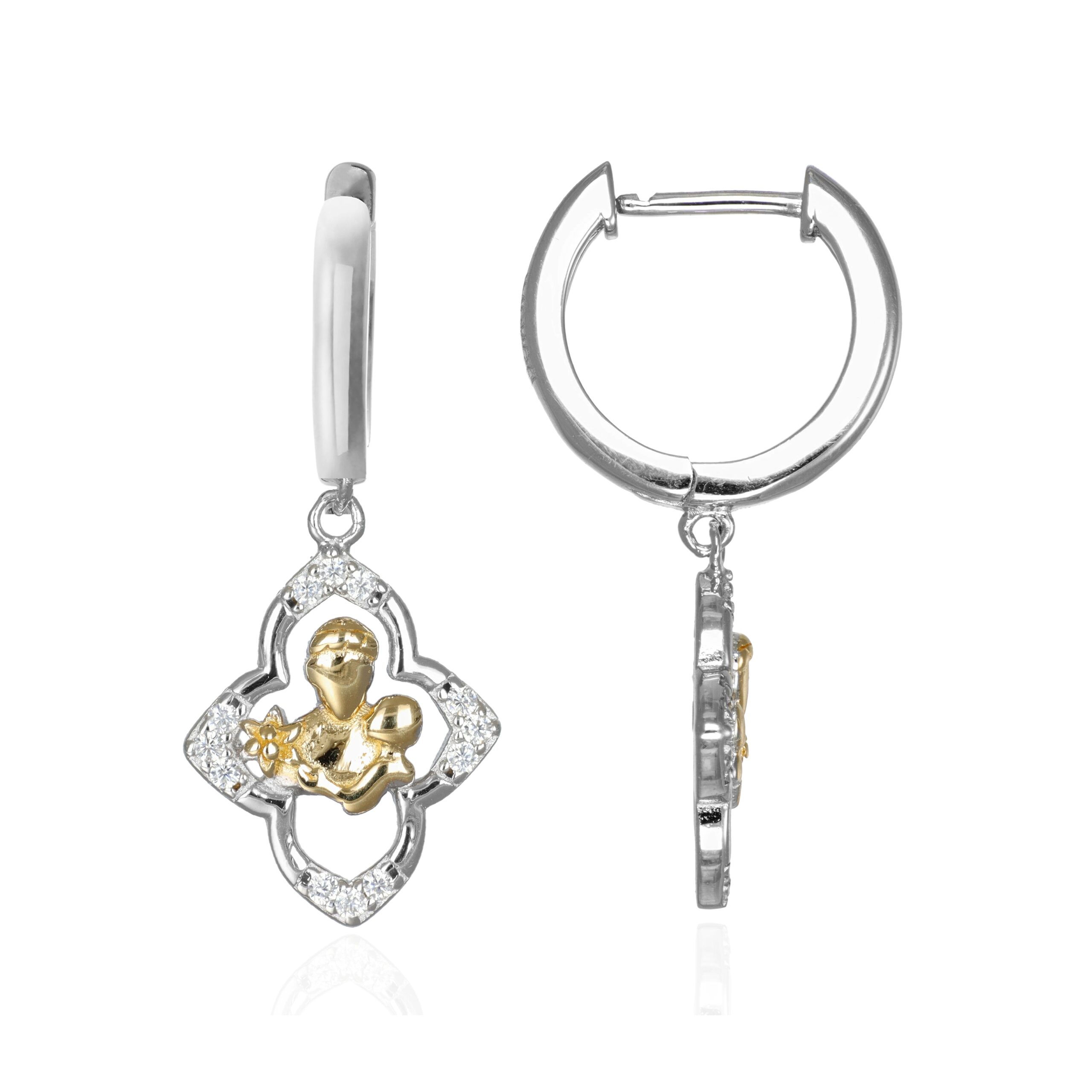 Orecchini in argento 925 rodiato e placcato oro 18k con zirconi bianchi, chiusura a scattino.